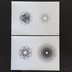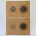 外トロコイドのグラフの絵柄の紙製ブックカバーです。 ブックカバーのサイズはA4判。天地左右を折って文庫のカバーとして使うことができます。 絵柄の違う5枚で1セット。 トロコイド (trochoid) とは、円をある曲線(円や直線はその特殊な場合)にそってすべらないように転がしたとき、その円の内部または外部の定点が描く曲線。円の外周にそって動かしたものを外トロコイド(またはエピトロコイド)といいます。定円の半径、動円の半径、動円の描画点の半径の比率によって、さまざまな曲線が描けます。この外トロコイドの糸掛けバージョンの絵柄を使ってブックカバーにしました。 使用した用紙はクラフト紙(ブラウン)と再生紙(コピー紙よりやや厚く、黄味がかった白)の2タイプ。お好みのほうをお選びください。ブックカバーとして使うだけでなく、小物の包装紙、写真撮影の背景紙などアイデア次第でいろいろ活用できます。折らずに発送します。 【素材】 クラフト紙 厚さ0.11mm 再生紙 厚さ0.10mm 【サイズ】 A4判(幅297×高さ210mm)×5枚 【購入の際の注意点】 市販の用紙にレーザープリンタでモノクロ印刷したものです。 写真と実物では多少色味が異なる場合があります。
