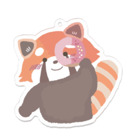 アクリルキーホルダー - 70 x 70 (mm)ご覧いただきありがとうございます🤍 あまゆきのあまい世界へようこそ。 70×70サイズの存在感抜群サイズ。 かわいいレッサーパンダちゃんが、あなたのことをドーナツの穴から見守っています。 日々がんばるあなたを見てる子は、ここにいるよ。