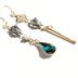 ファルカをイメージしたピアス/イヤリングです。 ハウライト風の天然石、グリーンのドイツ製のヴィンテージガラスストーンを使用しています。 撮影状況やお使いの端末の設定等により、画像と実物の色合い等に違いが出る場合があります。 ご不明な点はお気軽にお問い合わせください。 長さ:約6.2cm 金具の色:ゴールド *ご注意* *素人によるハンドメイド作品です。 *ハンドメイド作品ですので、同じ品を複数ご購入頂いた場合でも少しずつ個体差がある場合があります。 *金属を使用しております。金属アレルギーの方のご着用はご注意ください。 *一つ一つ丁寧に作成しておりますが、既製品と比べて強度や完成度が劣る場合がございます。ご了承の上お取り扱いにはご注意ください。 *水濡れや直射日光の当たる場所に放置しますと劣化が早まる恐れがありますのでご注意ください。