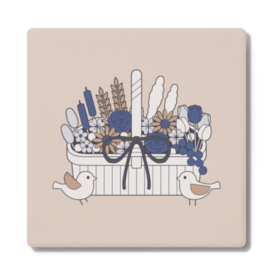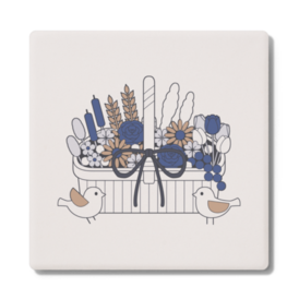 コースターA 角形 ベージュフラワーバスケット&小鳥のコースターです。 普段使いのファッションやお部屋にも馴染みやすい、 落ち着いたくすみカラー×白黒の組み合わせ♪ 以下から、お好きな種類をお選びください。 【種類】 ・円形×白(ホワイト) ・円形×くすみブルー ・円形×ベージュ ・角形×白(ホワイト) ・角形×くすみブルー ・角形×ベージュ この商品はpixivFACTORYで作られた商品です。サンプル画像は完成イメージのため、実物と異なる場合があります。