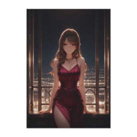 ポスター - B2この商品はpixivFACTORYで作られた商品です。サンプル画像は完成イメージのため、実物と異なる場合があります。 都会の夜景を背に、深いワインレッドのドレスをまとった大人の女性。 静かな自信と余裕を感じさせる佇まいが、 夜の光と溶け合い、ラグジュアリーな雰囲気を演出します。 落ち着いた色気と上品な輝きを楽しめる一枚です。