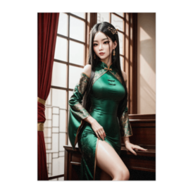 ポスター - B2この商品はpixivFACTORYで作られた商品です。サンプル画像は完成イメージのため、実物と異なる場合があります。 深い翡翠グリーンのチャイナドレスをまとった女性が、柔らかな自然光の差し込む室内に佇むポスター作品。 上品な刺繍と滑らかなシルクの質感が、東洋の優雅さと静かな気品を引き立てています。 クラシックな室内空間と自然光の組み合わせが、落ち着いた美しさを表現しています。 インテリアポスターとして、モダンな部屋や落ち着いた空間に優雅な雰囲気を添える作品です。