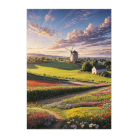 ポスター - B2この商品はpixivFACTORYで作られた商品です。サンプル画像は完成イメージのため、実物と異なる場合があります。 色とりどりの花畑が広がる丘の上に建つ風車と、のどかな田園風景を描いたアートポスターです。 ゆるやかな丘と広い空が広がる穏やかな景色は、明るく温かい雰囲気をお部屋に届けてくれます。 自然のやさしい色彩を楽しめる風景作品です。