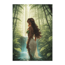 ジャングルの滝に佇む褐色の女神ポスター