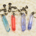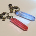 『水晶窟から発掘した水晶を加工し、作成したイヤリング。 一攫千金を求めて潜る者が多い水晶窟だが、危険な魔物も徘徊しており非常に危険なダンジョンである。 水晶から自然の力を感じられ、組み合わせにより様々な効果を得ることができる。』 装備時:(雷、氷、炎)各属性耐性(中) ーーーーーーーーーーーーーーーーーーーーーーーーーーーーー ー商品情報ー ☆レジンを使用したイヤリング(左右セット)。 イヤリングパーツは金古美風デザインを使用し、ファンタジー要素を感じられるデザインにしました。シンプルに仕上げていますので、日常のオシャレに一役買ってくれます。 ☆左右セットです。紺、赤、水色からお好きなものをセットでお選びください。 ※4つセットではありません。 ☆レジン部長さ:約2.5cm -ご注意事項- 〇小さいパーツを使用しておりますので、過度な負荷がかからないようにご使用ください。 〇各パーツに金属製のパーツを使用しておりますので、金属アレルギーの方はご注意ください。 〇光の当たり具合や写真写り、ご使用のモニター等により実際の物と色味などが異なって見える場合もありますが、ご了承ください。 〇ハンドメイド作品のため、神経質な方はご遠慮ください。
