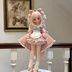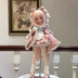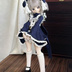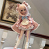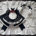 お洋服は全6点セットです。 ・ワンピース ・エプロン ・パニエ(スカート用) ・ソックス ・ヘッドドレス ・背面の大きなリボン エプロンのリボンはフックで固定されており、ご自身でDIY可能です。 また、胸元用のセットと同色のリボンも付属します。