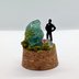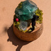 小さなガラスドーム入りのオブジェです。 机の上に、星をおひとついかがでしょうか。 ガラスドームは固定されていないので、外して飾ることも出来ます。 イングランドフローライトを使用しておりますので、通常のフローライトと異なりブラックライトで強く光ります。 この石は太陽光でも淡く青く見えました。先端に透明感があり、綺麗です。 小さな欠片のほうも、淡い緑のイングランドフローライトです。 素材∶ コルク、ガラス、イングランドフローライト(ダイアナマリア鉱山産)、ダイヤモンドクォーツ、ジオラマ素材、ドライフラワー サイズ∶ コルク最大経 2.8cm 高さ(ガラスドーム込み) 4.5cm 接着確認はしておりますが、小さい部品が多く、ガラス部分もあり衝撃に弱いので、お取り扱いにはご注意ください。