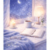 温かみのある水彩テクスチャで描いた、夜の窓辺のイラスト素材です。