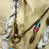 チェコプレスと羽のチャームをそえました。夜の海と夕焼けの海と風をイメージできたらいいな~~と思います。