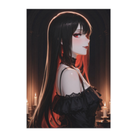 ポスター - B2この商品はpixivFACTORYで作られた商品です。サンプル画像は完成イメージのため、実物と異なる場合があります。 静かな横顔が印象的な、ゴシックスタイルの女性を描いた作品です。 横から差し込む柔らかな光が輪郭を美しく際立たせ、赤い瞳と黒髪のコントラストが幻想的な雰囲気を演出しています。 落ち着いた表情と繊細なライティングが、静寂と余韻を感じさせる一枚です。 空間に上品なアクセントを加えたい方におすすめのアートポスターです。