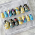 あんスタ "ALKALOID コトノハ” の衣装をモチーフにしたネイルチップセットです。 *レギュラーオーバルサイズのチップを使用しています *7サイズ、14ピースセットになっております。ネイルグミ2枚をセットにしてご送付いたします。 *色味が写真と異なる場合がございます。 *ハンドメイド作品です。 *既製品のような完璧なお品をお求めの方はご遠慮ください。 *注意しておりますが小さなチリや、気泡が入る場合がございます。ご了承ください。 *ご購入者様の爪のサイズに合わせやすいように、7サイズにしておりますが個人差がある為合わない可能性もございます。ご承知おきください。 制作素材:ジェルネイル、パーツ他 ***着画等のUP大歓迎です♪***
