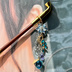 キセルかんざし 蓮×三日月×鬼灯 青系 レジン 和装小物 一本