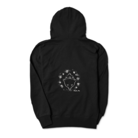 ジップパーカー - XL - ブラックまんまる元気印のオカメインコのジップパーカーです。 ブラックの生地なので単色のイラストです。 サイズはS,M,L,XLの4種です。 この商品はpixivFACTORYで作られた商品です。サンプル画像は完成イメージのため、実物と異なる場合があります。