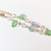 『風に揺れる若葉の魔力を封じた、初級冒険者のための装備品 若き精霊樹の枝より削り出された翠晶は、持ち主の呼吸に呼応して微かな魔力を巡らせる。傷を癒やす風を纏い、危機の一瞬には身体を軽くするという。 初級冒険者の旅路をそっと支える、風と若葉の加護。』 装備時:回復効果+5%、回避率+10% ーーーーーーーーーーーーーーーーーーーーーーーーーーーーー ☆透明感のあるチェコガラスビーズにゴールドのパーツを組み合わせ、優しく可憐な雰囲気を演出したブレスレットです。 ☆目立ちすぎず、普段使いもしやすいデザインとなっております。 ☆アジャスターを調整することで長さ調節ができます。 ☆ガラス製のチェコビーズを使用しています。強い衝撃が加わると破損の恐れがありますので、ご注意ください。 ☆サイズ 丸環まで含み:約14cm アジャスター:約6cm 全体:約20cm ※長さはあくまで目安としてお考え下さい。 ※本体以外のアイテムは商品に付属しません。 -ご注意事項- 〇小さいパーツを使用しておりますので、過度な負荷がかからないようにご使用ください。 〇メッキ加工の金属パーツを使用しておりますので、金属アレルギー等の方はご遠慮ください。 〇光の当たり具合や写真写り、ご使用のモニター等により実際の物と色味などが異なって見える場合もありますが、ご了承ください。 〇ハンドメイド作品のため、神経質な方はご遠慮ください。