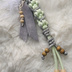 【グッズ】肉球キーホルダー(淡グリーン×グレー/ベロア&ウッドアクセント)