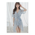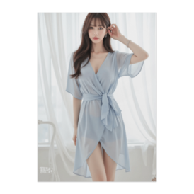 エレガントなブルーシフォンワンピースの女性ポスター