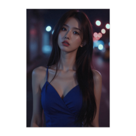 ポスター - B2この商品はpixivFACTORYで作られた商品です。サンプル画像は完成イメージのため、実物と異なる場合があります。 夜のネオンが反射する街並みの中で、静かに見つめる視線が印象的な一枚。 ロイヤルブルーのドレスと透明感のある肌が、都会的で洗練された雰囲気を演出します。 見る人の心を引き込む、強く美しい存在感を持つポスターです。