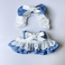 汎用サイズ ぬい服 メイド風 エプロンドレス 青 デニム 星形パール 10cm 11cm 12cm