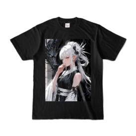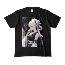 カラーTシャツ - XL - ブラック (濃色)この商品はpixivFACTORYで作られた商品です。サンプル画像は完成イメージのため、実物と異なる場合があります。 デザインの特徴 黒龍の力強いデザイン: 龍の力強さ、威厳、神秘性を表現した迫力あるイラスト。 巫女の優雅さ: 巫女の姿を美しく描き、精霊や神々とのつながりを感じさせるデザイン。 幻想的な色合い: 深い黒を基調に、神秘的な輝きが加わることで、リアルでありながら幻想的な雰囲気を醸し出しています ファンタジーを感じながら、コーディネートに取り入れてみてください。