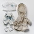 大きめヘッドの春コーデずんだもんです! お目々に星型のハイライトが入って、きらきら夢見る表情をしています。 お洋服は全体的に明るいトーンでまとめています。ふんわり柔らかい色味だけれども甘くなりすぎない塩梅を目指しました。 アイボリーのモッズコートは目の詰まったしっかりめの生地です。ステッチをたくさん入れてかっちりと仕上げています。 フードにはしっぽ…ずん毛を通す穴があります。 フードを被っていない時は被り口に通したゴムできゅっとしぼっておくといいです。頭が大きいぶんフードもでかいので、そのままだとかっこよくないです。 Tシャツは後ろ面ファスナー開き、かぼちゃパンツはウエストゴムです。 ボディは市販の26cmお世話人形(例:メルちゃん、ソランちゃん)とサイズが近く、お洋服の互換性があります。 お洋服はすべて着脱可能です。市販のお洋服に着せ替えて遊んでいただくことも歓迎いたします。