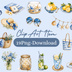 「 季節夏 Summer 」水彩アンティーク風クリップアート素材19点セット|PNG形式背景透過