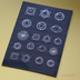 チャクラのシンボルをOHPフィルムにモノクロで印刷し、金/銀の箔を押しました。 画像で黒くまたは白くみえるところは実際は透明です。 はさみやカッターなどを使って必要な部分を切り取り、レジン封入用にお使いください。 裏面からみると黒1色です(写真3)。 チャクラとはサンスクリットで円、円盤、ろくろの意味。ヒンドゥー教のタントラでは人体の頭部や胸部、腹部などにある中枢をさします。主なチャクラには以下の7つであり、チャクラを通じて高次のエネルギーを体内にとりこむことができるといわれています。 第1のチャクラ(ムーラーダーラ)、第2のチャクラ(スワーディシュターナ) 、第3のチャクラ(マニプーラ)、第4のチャクラ(アナーハタ)、第5のチャクラ(ヴィシュッダ)、第6のチャクラ(アージュニャー)、第7のチャクラ(サハスラーラ) それぞれのシンボルアイコンをサイズにバリエーションをつけて収録しました。 サイズ大 直径22mm程度。サイズ小 直径16mm程度。 全18ピース(サイズ大 7点 サイズ小 11点)。 【素材】 OHPフィルム 厚さ0.10mm 箔押し スタンピングリーフ 金/銀 ※写真はありませんが、金、銀のほか、銀、赤金、マット白、マット赤、3色ボカシ(+100円)、ニューレインボー(+100円)の箔を押すこともできます。ご注文時にメッセージよりご連絡ください。 ※「オーダーメイド レジン封入用フィルム 箔押し」https://puikko.booth.pm/items/639198 の申し込みも受け付けています。このフィルムに収録した絵柄のサイズを変えてほしい、特定の絵柄のみ複数収録してほしいなどのご希望もこちらからどうぞ。 【サイズ】 幅105×高さ148mm(A6判、ほぼはがきサイズ) 【購入の際の注意点】 写真と実物では多少色味が異なる場合があります。 市販のレーザープリンタにOHPフィルムを使って印刷し、箔押ししているので、精密さに欠けるところがあります。 制作工程上、どうしても余分に箔押しされているところ、箔押しが抜けているところが発生してしまいます。あらかじめご了承のうえ購入をお願いします。 このフィルムを使用して制作したオリジナル作品の販売はOKです。 フィルム自体の転売やコピーはおやめください。