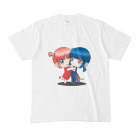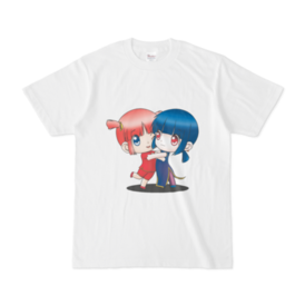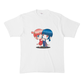 Tシャツ - XLLINEスタンプやLINEの着せ替えのキャラクター「あおいたんとメグたん」のデフォルメキャラクターの白Tシャツになります。 @rui480(twitter)様が下絵を作成頂いたものを線画から色付けまでお任せ頂き完成したイラストを基に作成いたしました。 この商品はpixivFACTORYで作られた商品です。 サンプル画像は完成イメージのため、実物と異なる場合があります。