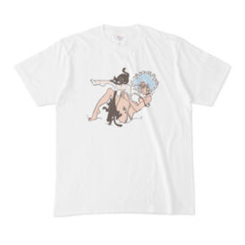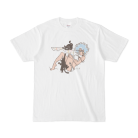 Tシャツ - XL「オネェちゃんと猫背」シリーズ。ストッキング対決! この商品はpixivFACTORYで作られた商品です。サンプル画像は完成イメージのため、実物と異なる場合があります。