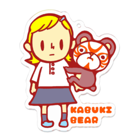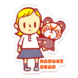 アクリルキーホルダー - 70 x 70 (mm)抱きつくのが好きなカブキグマ・ヌイグルミと困惑ガールのキーホルダーです★ 身につけたとたん、KAWAIIの大合唱まちがいない🎵