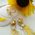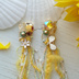 MGSPWのカズヒラ・ミラーをイメージしたイヤリングです。 カズを象徴するカラーである黄色いスワロフスキーを基調に、揺れるオオアマナのモチーフを使って作りました。 ●スワロフスキー #4320 10×14mm クリスタルメタリックサンシャイン #4470 10mm ライトトパーズシマー ●シトリン ピースウォーカー事件があった11月の誕生石 ●スワロフスキー #5810 クリスタルパール(イラデサントグリーン) カズの軍服をイメージしました ●メタルパーツ・バタフライ ●メタルチャーム・サングラス ●各種ヤーン カズのスカーフやサングラス、モルフォ蝶をイメージしました。