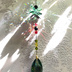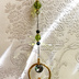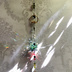 鴬丸イメージサンキャッチャー メインドロップにはスワロフスキー社製のペアシェイプ型・アンティークグリーンゴールデンチーク(38×22ミリ)を使用。 このカラーを見つけた時に、鴬丸にぴったりだなと思い、いつか必ず作ろうと思いました。 全体的なカラーリングは衣装から抽出して選んでみました。 途中の白いパーツはコットンパールを使用し、手首のポンポンを表してみました。 リングパーツは胸元の刀紋の飾りをイメージして、中心に黒っぽい丸いパーツを、下部に三連の花をイメージして金色のパーツをつけてみました。 サンキャッチャーとして暗めの色合いとはなりますが、陽の光やスポット光(懐中電灯等)でも、プリズムの乱反射を楽しむことも出来ますし、 間接照明の灯りなどでも、ムーディーな雰囲気がうまれると思います。 そのあたりも、どことなく鴬丸らしい雰囲気だと思いますが、いかがでしょうか。 材質 スワロフスキー(クリスタルガラス)、コットンパール、テグス 金属(つぶし玉、カニカン等、リングパーツ、花モチーフパーツ) 全長 約38センチ 重さ 約33グラム <サンキャッチャーとは・・・・・・> 窓辺や陽射しの入る場所などに吊るすことで、ガラスパーツが乱反射し、室内にうまれる虹色のキラキラとした光を楽しむインテリアアイテム。 太陽光だけでなく、室内であってもスポット光や、間接照明などでもその光を楽しむことができます。 <ご注意> シャンデリアパーツとして作られているスワロフスキーのクリスタルガラスをメインに使用しております。 シャンデリア用パーツの為、細かな傷などが元から付いている場合がございますことをご了承ください。 ガラス製品ですので、ぶつけたり、落下などの衝撃でパーツが欠けてしまったり、割れてしまう可能性もございます。 お取り扱いにはご注意ください。 室内、屋内でのみのご使用をお願いしております。 飾っている間に埃が付いてしまった場合は、柔らかい布や、眼鏡拭きなどで優しく拭いてください。 商品到着後、開封時に破損などがございましたらBOOTHよりご連絡ください。 修理もしくは交換にてご対応させていただきます。 それ以外でのご返品、返金、交換、パーツ変更などはお受け出来ません。 <配送について> あんしんBOOTHパックを利用しての匿名配送となりますが、 配送方法は「宅急便コンパクト」のみとさせていただきます。 配送は日本国内のみとなっております。 ご入金確認後、7営業日以内に発送させていただきます。