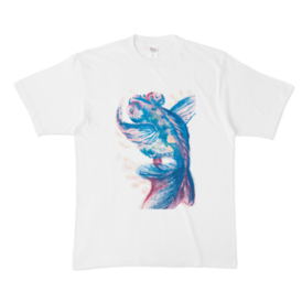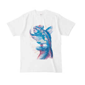 『夏の終わりの魚』携帯ケースと共にTシャツも作りました。 夏の賑わいが静まり返っていく中、祭りですくった出目金が踊りだす。 この商品はpixivFACTORYで作られた商品です。サンプル画像は完成イメージのため、実物と異なる場合があります。