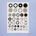 円モチーフの絵柄をOHPフィルムに印刷し、金の箔を押しました。 写真で黒くみえるところは実際は透明です。 必要な部分をはさみで切り取り、レジン封入用にお使いください。 表面は金、裏面は黒です(写真2)。 円を基本に、ドーナツ、カメラの絞り型、同心円、渦巻きなど12種をサイズにバリエーションをつけて収録しました。 全37ピース(サイズ大 8点、サイズ中 15点、サイズ小 14点)。 サイズ大 直径20mm程度、サイズ中 直径15mm程度、サイズ小 幅10mm程度。 【素材】 OHPフィルム 厚さ0.10mm ※写真はありませんが、金のほか、銀、赤金、青金、マット白、マット赤、3色ボカシ(+100円)、ニューレインボー(+100円)、朱(オレンジ)(+100円)、ホログラム菱柄(+100円)の箔を押すこともできます。ご注文前にメッセージでご連絡ください。 ※「オーダーメイド レジン封入用フィルム 箔押し」https://puikko.booth.pm/items/639198 の申し込みも受け付けています。このフィルムに収録した絵柄のサイズを変えてほしい、特定の絵柄のみ複数収録してほしいなどのご希望もこちらからどうぞ。 【サイズ】 幅105×高さ148mm(A6判、ほぼはがきサイズ) 【購入の際の注意点】 写真と実物では多少色味が異なる場合があります。 市販のレーザープリンタを使ってOHPフィルムに印刷し、箔押ししているので、精密さに欠けるところがあります。 制作工程上、どうしても余分に箔押しされているところ、箔押しが抜けているところが発生してしまいます。あらかじめご了承のうえ購入をお願いします。 このフィルムを使用して制作したオリジナル作品の販売はOKです。 フィルム自体の転売やコピーはおやめください。