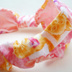 ☆sale☆ネコ柄のガーゼリボンヘアバンド (ピンク)