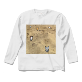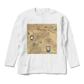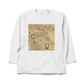 砂漠と猫のロングスリーブTシャツ白です。 この商品はpixivFACTORYで作られた商品です。サンプル画像は完成イメージのため、実物と異なる場合があります。