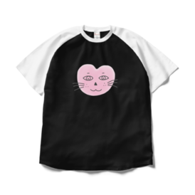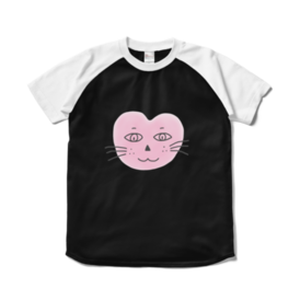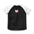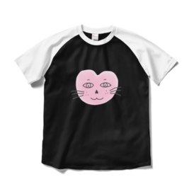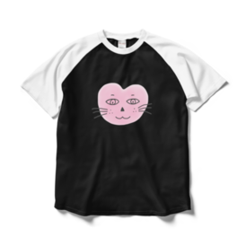 まるーいハートねこのラグランTシャツ ブラック・黒×ホワイト・白