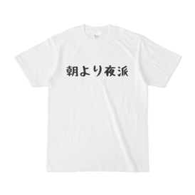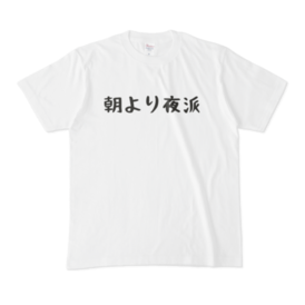 Tシャツ - XL - 白朝より夜派の方へ ===使用者の口コミ===⠀ ⠀ 男は夜派 女は朝派 というのが生物学的には正しいらしい。 だって男は種付けたら死んでも良いけど女は種付けられたら守らなければいけないから。 だから男は疲れた時にやりたくなるし、女は元気な時にやりたくなるらしい。 そんな生物を極めた男にこそこのTシャツを着て欲しい。 男らしいアピールになるぜ? ⠀ (32歳 思想家男性) ⠀ ⠀ ============= ⠀ ⠀ 男女問わず使えます。まさにユニセックスです。⠀ ⠀ ⠀ もちろんプレゼントや部屋着、チームTにおすすめ。⠀ ⠀ お泊まりした彼氏彼女にとっての部屋着にするとウケます。 ⠀ この商品はpixivFACTORYで作られた商品です。サンプル画像は完成イメージのため、実物と異なる場合があります。