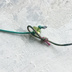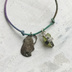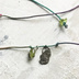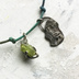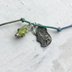 ベスビアナイトの原石を、ラフな爪で留めて。 (アイドクレースともいうらしいです) ミネラルショーでみかけて、とても好きな石です。 銀の板をすこし溶かして作った、ラフなプレートと一緒にヒモに通しました。 紐はポリエステルのグラデーションがきれいな物をつかいました。 留め金代わりのペリドットは、カットがきれいなペリドットビーズを使いました。 ラフなプレートにはベスビアナイトのVと硬度の5を刻印してあります。 紐の長さは38㎝ですが、結び目をあまり硬くしばっていないので。 ほどいて、お好きな長さに調節してください。 石:ベスビアナイト原石7×4㎜ ペリドット7×4㎜ 950銀 ヒモ:38㎝ 1点物 出来上がっている作品ですので、ご入金確認後 2~3日中にレターパックライトで発送いたします。