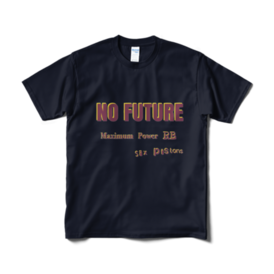 以前のネタで作ったデザインの転用&リファインTシャツ。 前面にNoFuture(S◯X PISTOLSのオマージュ) 背面に盆栽レーシングロゴのちょっと豪華なカラーバリエーション仕様。 ネイビー、ブラック、レッドの3種類です。