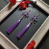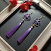 【ゴールドビーズ】吉祥結びとタッセルのピアス(イヤリング)(薄紫)【チャイナ】【中華風】【袴】【和風】【和装】