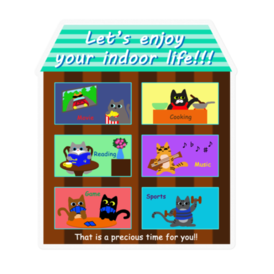 ステッカー - 100 x 100 (mm)この商品はpixivFACTORYで作られた商品です。サンプル画像は完成イメージのため、実物と異なる場合があります。 STAY HOMEにちなんで、インドアライフを楽しんでいる猫達のイラストがデザインされているステッカーです。