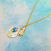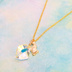 14KGF 可愛い猫シルエットモチーフと大粒スワロフスキー・クリスタル(クリスタルオーロラ)のネックレス