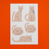 シンプルな猫イラストをアイロン転写シールに印刷しました。 必要な部分をはさみで切り取り、Tシャツやトートバッグなど、布製のものにアイロンを使って貼り付けてください。 貼り付けると、写真の状態とは左右反転します。 印刷がない部分は透明です。 シンプルな線で描いた猫のイラスト4種・5点をアイロン転写シールに印刷しました。 絵柄のサイズ 長辺43〜74mm 【素材】 アイロン転写シール(インクジェットプリンタ用) 白色・薄色生地用 【サイズ】 はがきサイズ(幅100×高さ148mm) 【購入の際の注意点】 市販のインクジェットプリンタを使って印刷しているので、精密さに欠けるところがあります。あらかじめご了承ください。 使用できる布は綿100%および綿とポリエステル混紡(綿50%以上)。高温のアイロンがけできない生地には使用になれません。 厚手の生地、縫い目や段差のあるところはおすすめできません。 Tシャツの場合は転写を行う前に柔軟剤なしで洗濯を行ってください。 目の粗い布地の場合、転写の仕上がりにムラができることがありますのでご注意ください。