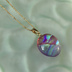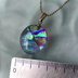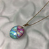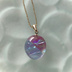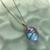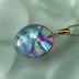 フュージング技法で作るガラスのペンダントトップです。 大判の板ガラスをガラスカッターで切り出して組み合わせ、電気炉で800℃以上で焼成して作ります。 ガラス部分はピンクと、蛍光灯でブルー、太陽光とLEDでは薄いパープルにカラーチェンジする二色を組み合わせており、光源により表情の違いを楽しめます。 キラキラと光る効果はガラスに金属を真空蒸着したダイクロガラスを使用しています。 工具や機材は使用していますがアクセサリーパーツ以外はすべて一つ一つ手造りです。 本品はガラスでできております。お取り扱いは充分お気をつけください。 【本体】 素材 : ガラス 重さ : 約3.6g 【付属 】 カットボールチェーン 素材:真鍮に代用金メッキ 長さ:約40cm