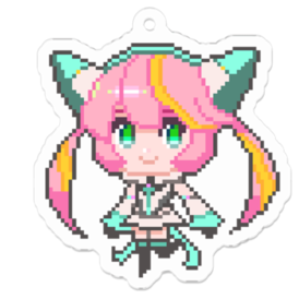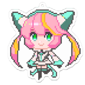 ミー子ちゃんのドット絵アクリルキーホルダーです。 キャラクターイラスト:ヲシテ この商品はpixivFACTORYで作られた商品です。サンプル画像は完成イメージのため、実物と異なる場合があります。