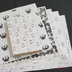 山東京伝「小紋雅話」に載っている面白小紋を使って紙製ブックカバーにしました。 ブックカバーのサイズはA4判。天地左右を折って文庫、新書のカバーとして使うことができます。絵柄の違う5枚入り。 山東京伝は江戸時代の浮世絵師、戯作者。1790年に刊行した「小紋雅話」(こもんがわ)は、ジョークやパロディ感あふれる文様を多数掲載した図案集。その中から5点を選び、紙製ブックカバーにしました。 1.本田つる 鶴のように見えるが実は本田髷と呼ばれるちょんまげを頭の上から見た図。 2.めくりかさね 扇の文様のように見えるが実はカルタをもった手。 3.ねずみ小紋 かわいい鼠の文様。 4.まいまい巴 カタツムリを巴文様にしたもの。 5.雨降り小紋 雨具をつけた人間をシンプルな文様にしたもの。 使用した用紙は再生紙(コピー紙よりやや厚く、黄味がかった白)とクラフト紙(ブラウン)の2タイプ。お好みのほうをお選びください。ブックカバーとして使うだけでなく、小物の包装紙、写真撮影の背景紙などアイデア次第でいろいろ活用できます。折らずに発送します。 【素材】 再生紙 厚さ0.1mm クラフト紙 厚さ0.11mm 【サイズ】 A4判(幅297×高さ210mm)×5枚 【購入の際の注意点】 市販の用紙にレーザープリンタでモノクロ印刷したものです。 写真と実物では多少色味が異なる場合があります。