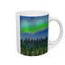オーロラ輝く夕空の森
