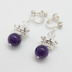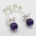 使用素材:アメシスト・クリスタル 基本金属:古代銀(プラチナ・白) 長さ:飾り部分3㎝ ※ピアスに変更可能です。お支払いの直後にご連絡ください。 ころんとしたラウンドのアメシストに王冠をかぶせました。 古代銀のホワイトカラーがかわいい、使いやすい長さのイヤリングです。 ※送料には梱包代が含まれています。クリックポスト・宅急便コンパクトのいずれかで発送いたします。 ※天然石(シェル・淡水パールなどを含む)ビーズは天然物のため、色味や大きさや形状が粒によって異なります。また、通し穴周辺を中心に割れ・欠け・ひび・傷あるものもございます。こちら、ジュエリーとは異なりますのでご了承お願いいたします。 ※天然石・素材の名称・色・形状は素材購入時の商品の記載によっています。
