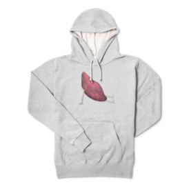 パーカー - XL - 杢グレーまったりくつろぐサツマイモさんを全面に出したパーカーです。 この商品はpixivFACTORYで作られた商品です。サンプル画像は完成イメージのため、実物と異なる場合があります。