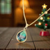 【秋冬カラー】 クリスタルガラスのしずく型グラデーションネックレス グリーン×ブラウン ゴールド金具